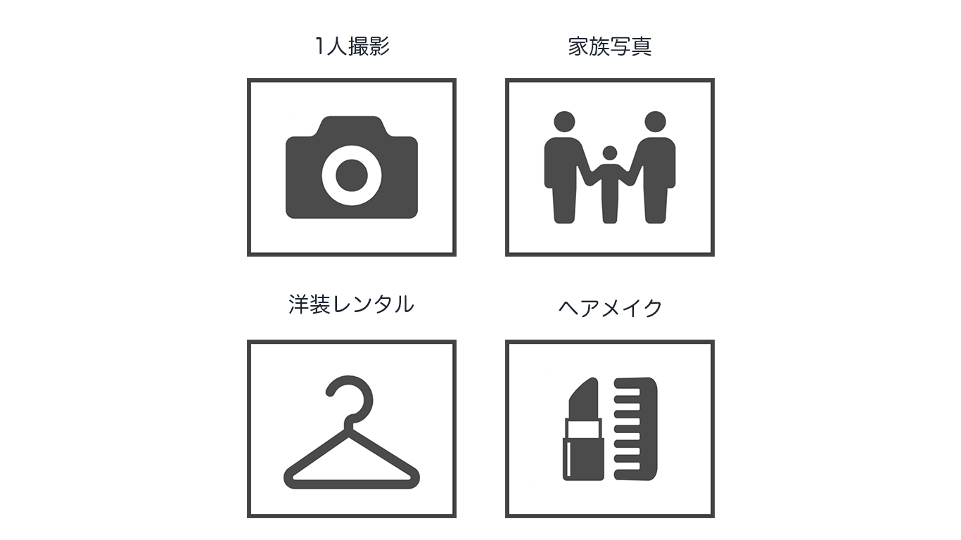 | 衣装レンタル(洋装) | 1着につき¥1,100 |
