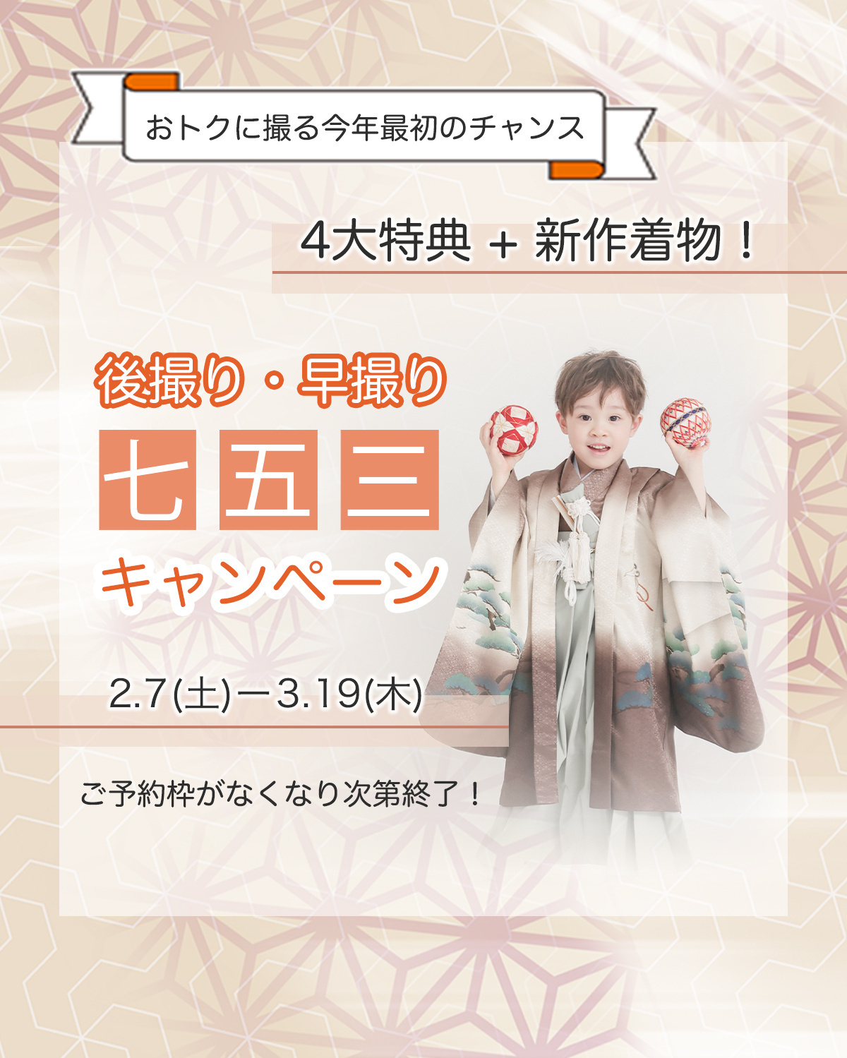 ※七五三の主役人数分、撮影プランの予約が必要です
