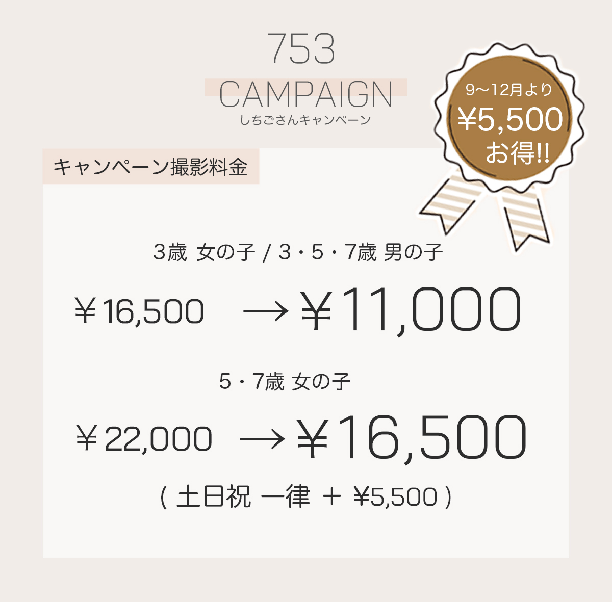 | 入園・入学撮影追加 | ¥5,500 (2025.4.28まで特典付き) | |