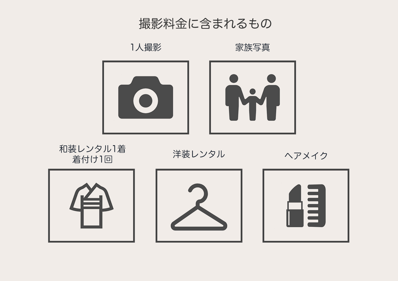| 衣装レンタル | 1着につき¥1,100 | ※年齢・内容により異なります |