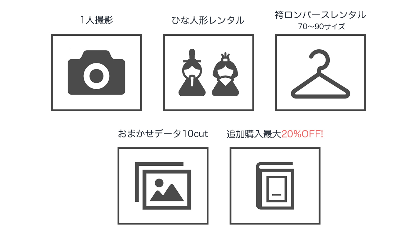 (洋装1~2着・袴ロンパース・ひな人形レンタル付き)